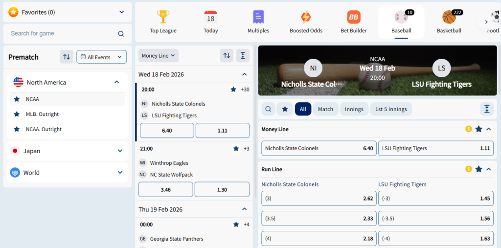| 스포츠 종목 | 주요 리그 | 일일 경기 수 | 베팅 마켓 수 |